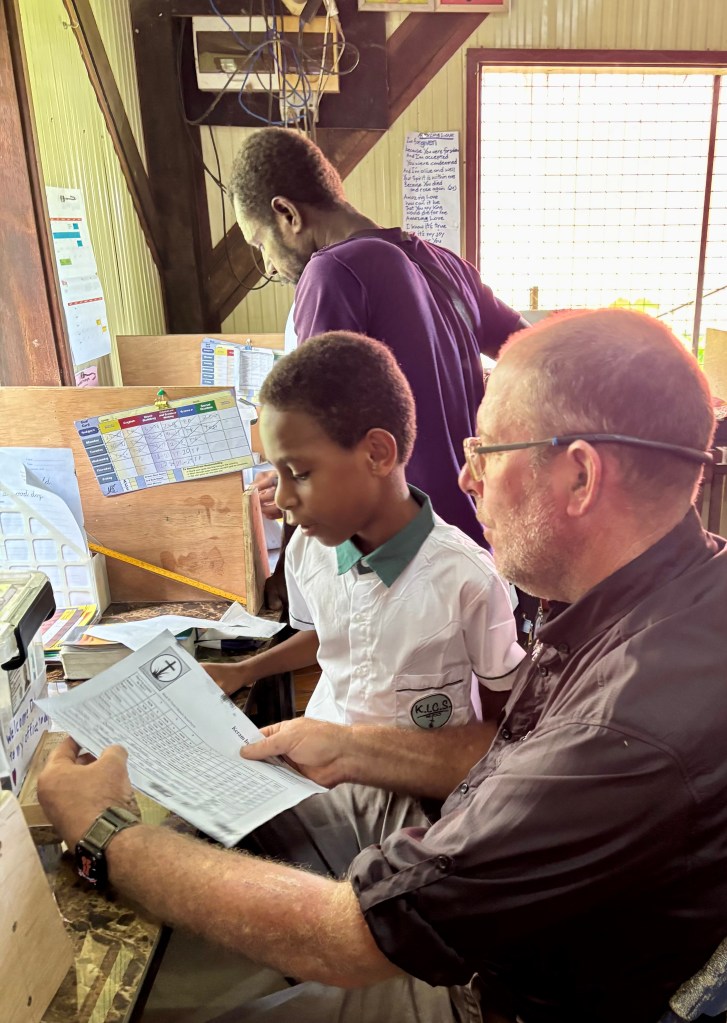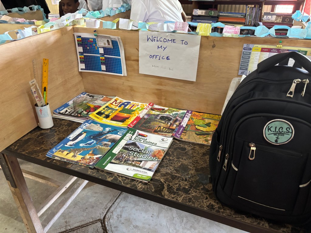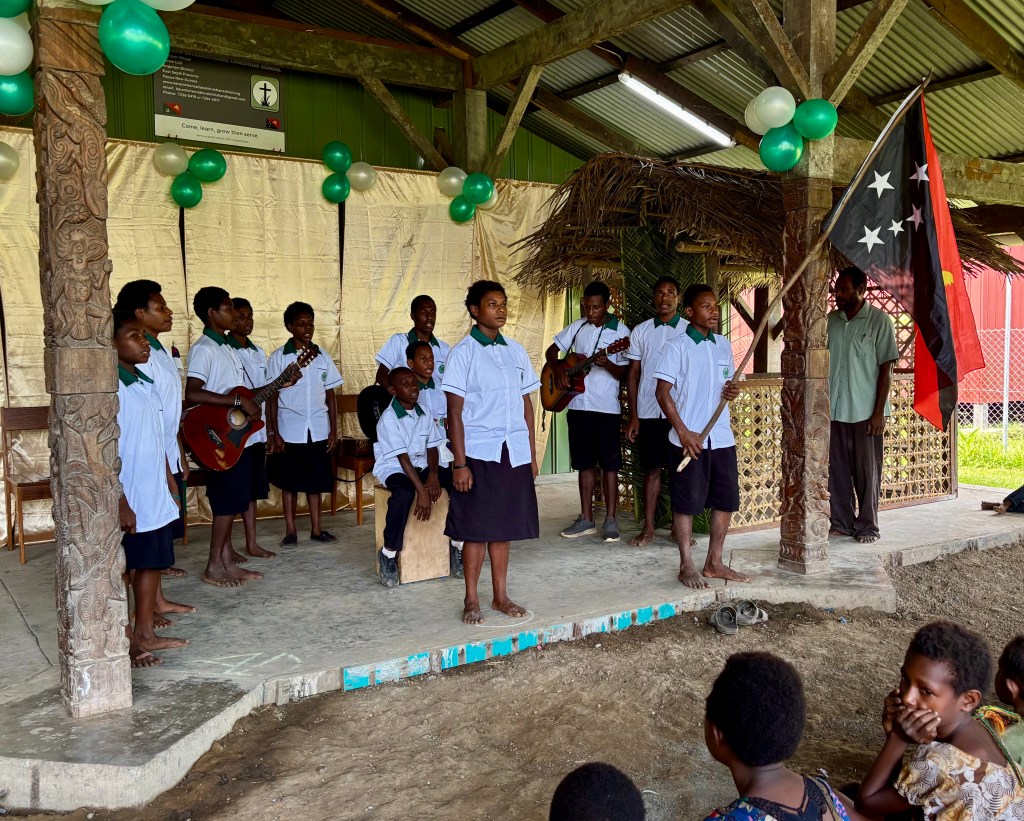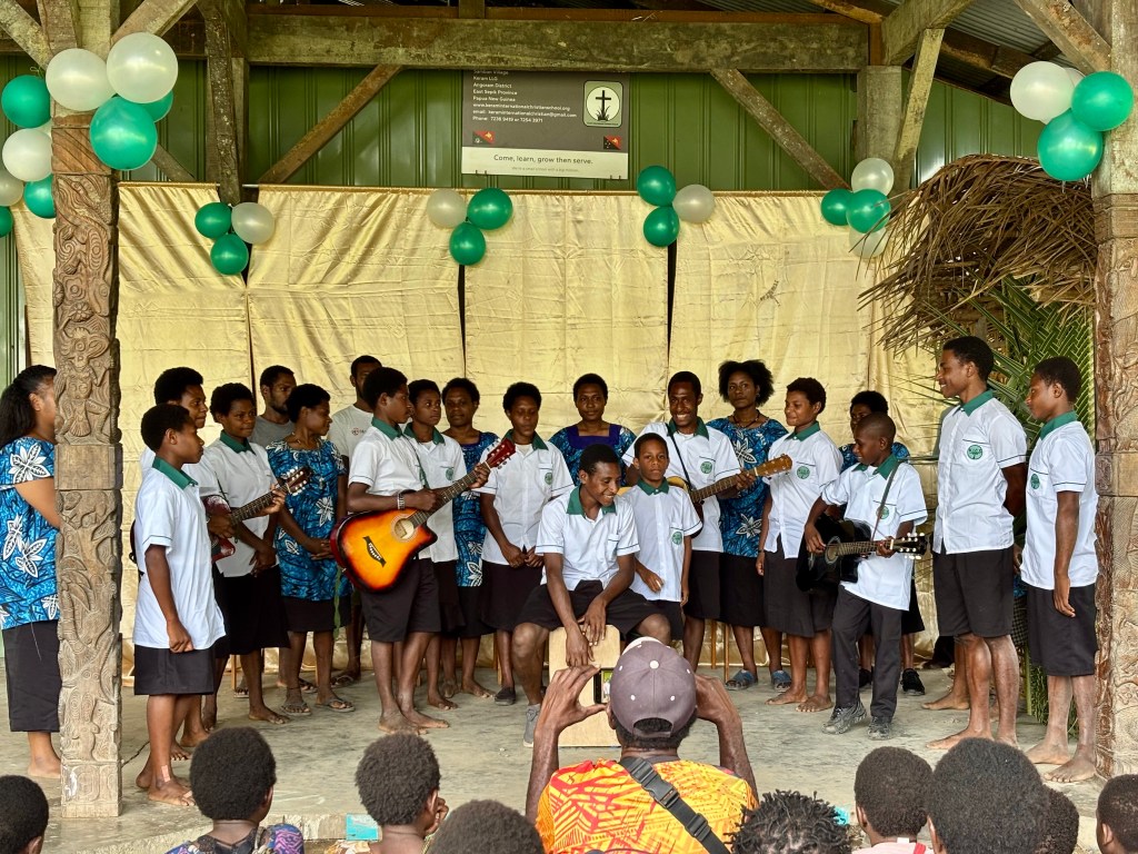 Nervous and excited, the KICS students waited in the classroom for the moment when they would step out in front of the waiting parents. While programs, plays, and performances are normal in most American schools, PNG students rarely have these opportunities. After our 45-minute program of songs, oral reports, a 20-verse Bible memory passage, poetry readings, and a skit, the students’ faces lit up with smiles. They had done well. Parents quickly joined their children for a tour of the classroom and to look over the past 10 weeks of work. One parent asked, “Are you planning to do a program every term?” “Yes,” we happily explained. Planning for the end-of-term program keeps us focused and gives the kids something to look forward to. Each student is learning to play guitar, and every week we work on art and science projects. It is good for students to know their hard work will be seen and appreciated. Thank you to those who attended and encouraged our students. Click the first photo to see more pictures of our term 1 activities.