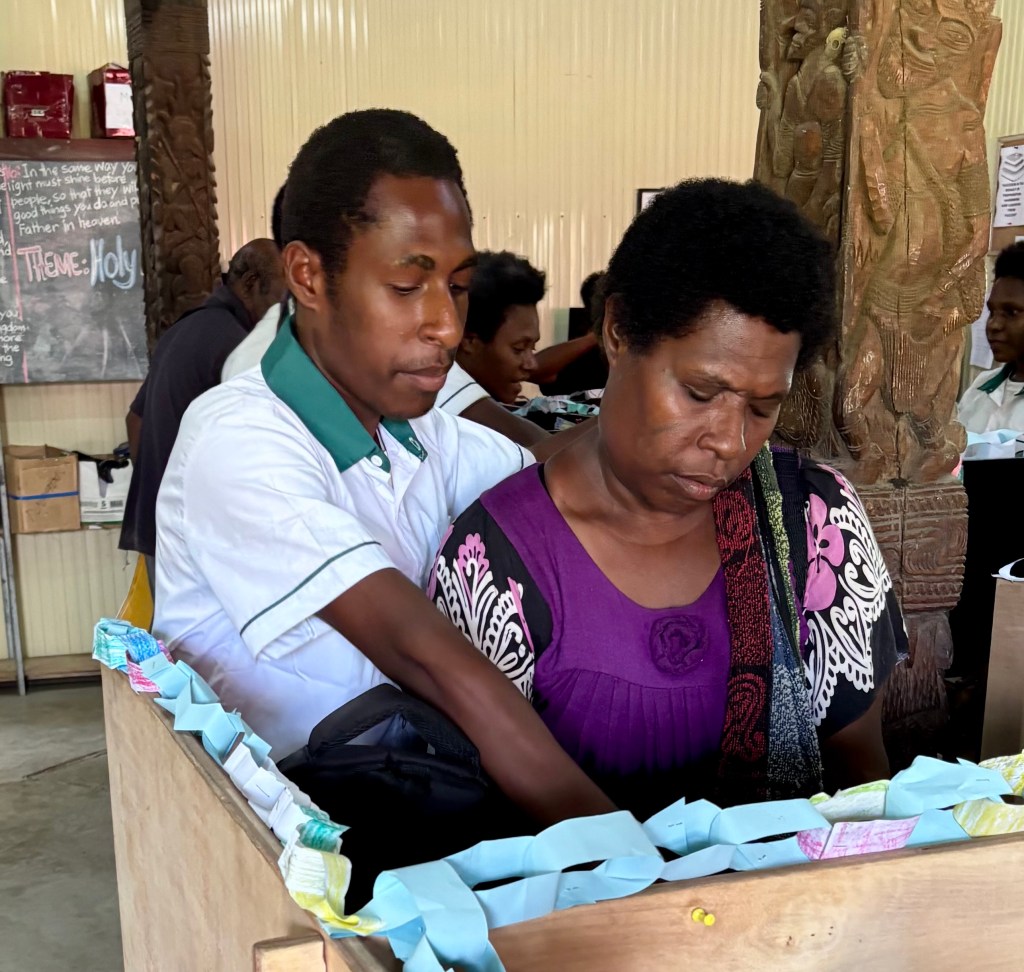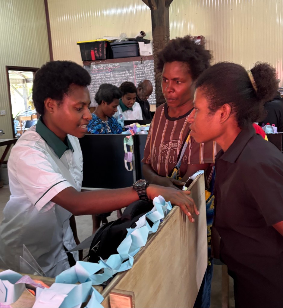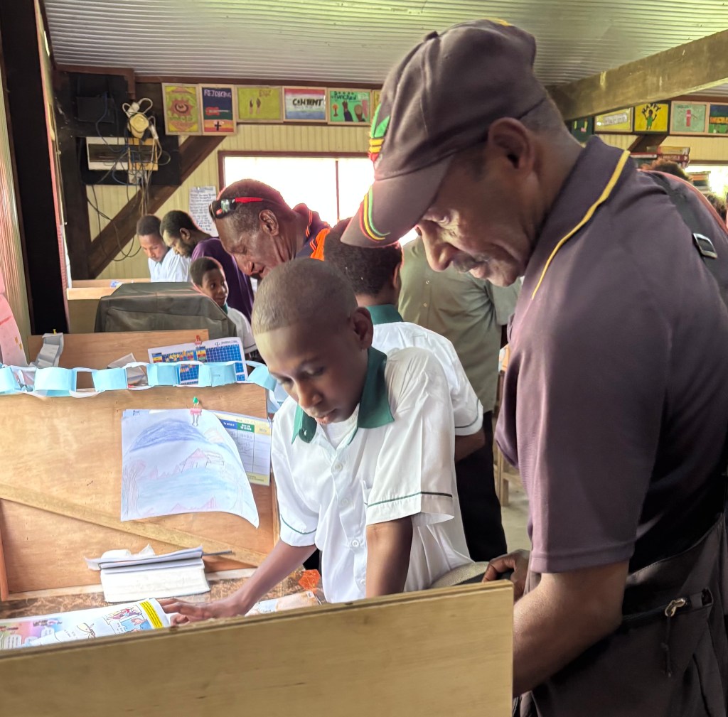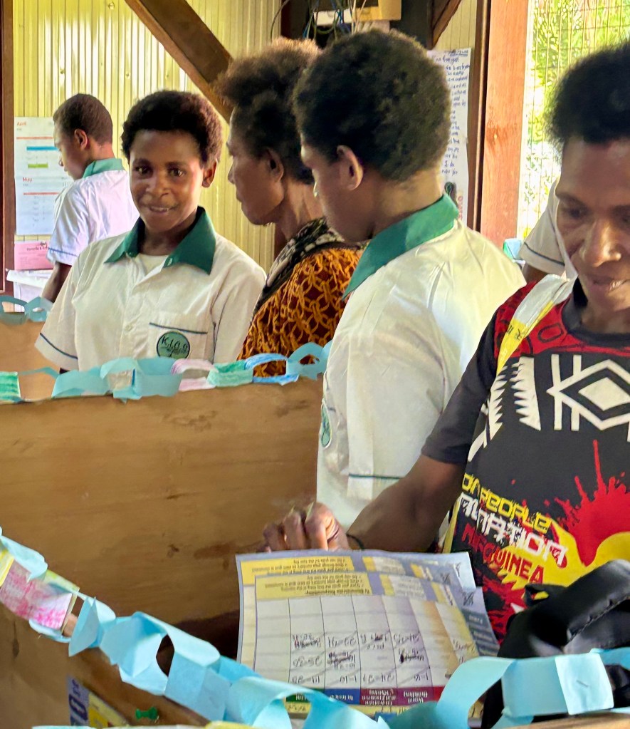 Nervous and excited, the KICS students waited in the classroom for the moment when they would step out in front of the waiting parents. While programs, plays, and performances are normal in most American schools, PNG students rarely have these opportunities. After our 45-minute program of songs, oral reports, a 20-verse Bible memory passage, poetry readings, and a skit, the students’ faces lit up with smiles. They had done well. Parents quickly joined their children for a tour of the classroom and to look over the past 10 weeks of work. One parent asked, “Are you planning to do a program every term?” “Yes,” we happily explained. Planning for the end-of-term program keeps us focused and gives the kids something to look forward to. Each student is learning to play guitar, and every week we work on art and science projects. It is good for students to know their hard work will be seen and appreciated. Thank you to those who attended and encouraged our students. Click the first photo to see more pictures of our term 1 activities.